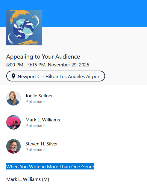 | Panelists: | Barbra Dillon, Nicholas Doan, L. K. Indigo, Russell Nohelty, William O'Neill, and Joelle Sellner. Moderator: Nicholas Doan |