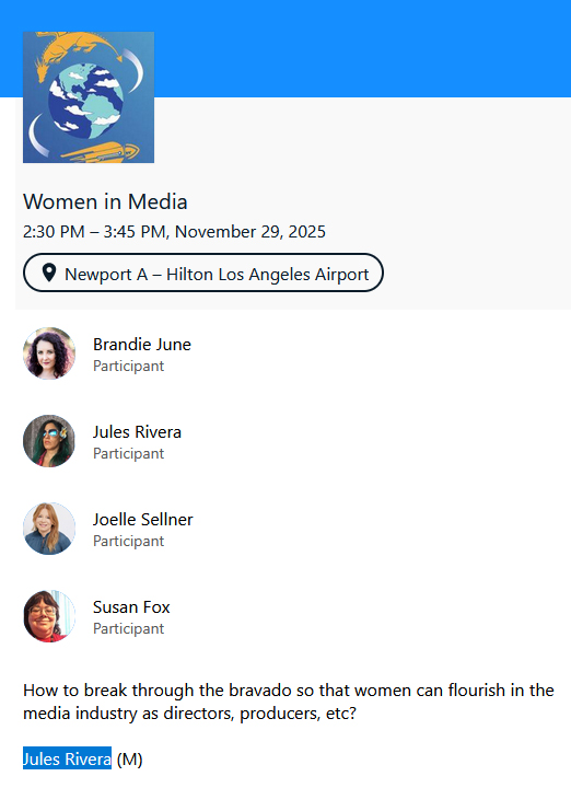 Description: How to break through the bravado so that women can flourish in the media industry as directors, producers, etc?