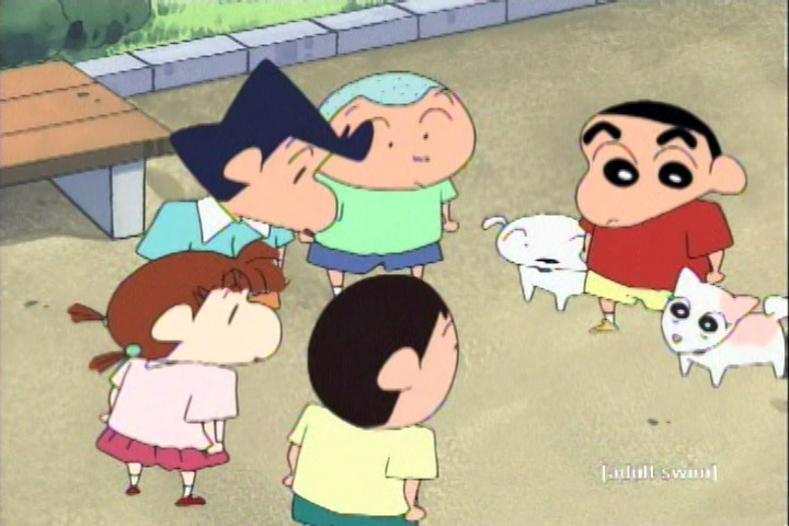 Shin Chan was an animated television series produced by Funimation which aired on Adult Swim. The animated series focused on the antics of Shinnosuke "Shin-chan" Nohara, a little boy who seems to do everything he can to annoy his parents and teachers (and succeeds wildly). He just tries to have a good time and in doing so does things which will create the maximum vexation in others. The show ran for 26 episodes over 2 seasons.